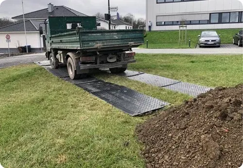 Bodenschutzplatten werden im Garten- und Landschaftsbau verwendet, um Wege, Einfahrten oder Parkplätze zu schützen. Sie verhindern, dass Fahrzeuge oder Fußgänger den Boden beschädigen oder Matsch und Schmutz aufwirbeln.
